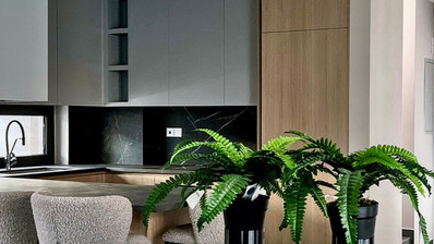 - Combined kitchen and dining area