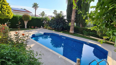 • Large private swimming pool surrounded by a landscaped garden and sun loungers