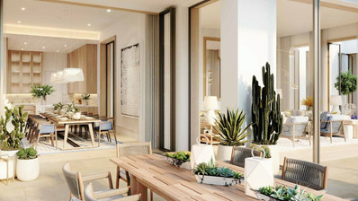 - Combined kitchen and dining area