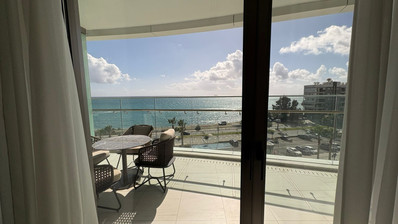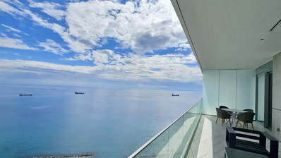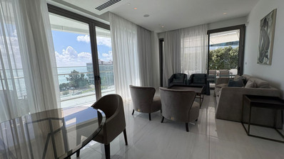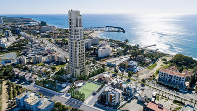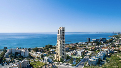 An exceptional high-floor residence in the tallest coastal tower in Cyprus, offering unobstructed 360° views of the sea, city and mountains. Located on the 10th floor, this apartment combines elegant design, comfort and prime beachfront living just 50 meters from the sea.