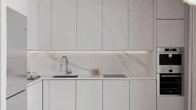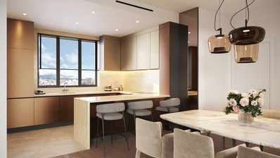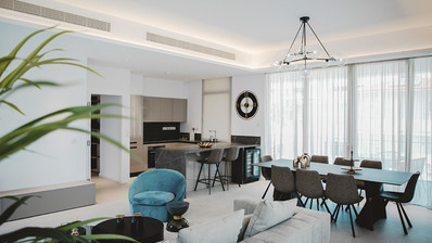 - Combined kitchen and dining area