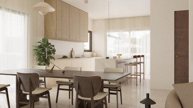 - Combined kitchen and dining area
