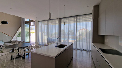 Ground floor consists of an open-plan kitchen leading to the living and dining room area with access to a beautiful garden with the view of the swimming pool.