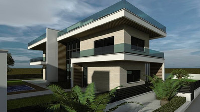 A refined, Mediterranean-inspired design that combines modern architecture with natural materials like wood, marble, and stone, blending elegance with coastal charm